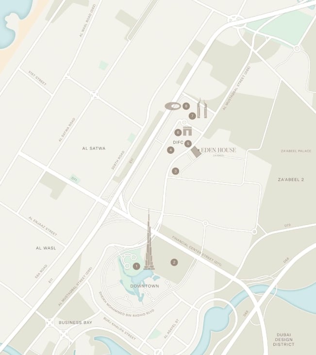Ideally located in the heart of DIFC, Eden House Za’abeel offers effortless access to Sheikh Zayed Road, Al Mustaqbal Street, and Dubai International Airport. Surrounded by fine dining, art galleries, and global business hubs, it’s a prime address for modern professionals seeking both connectivity and exclusivity.